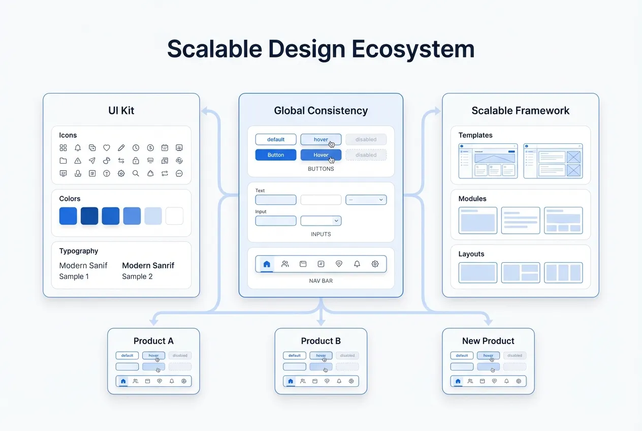 SimplifAI builds flexible, reusable design systems that can grow with your business. Whether you’re adding new features, expanding teams, or launching additional products, our scalable systems ensure consistency, speed up development, and maintain quality across all touchpoints.