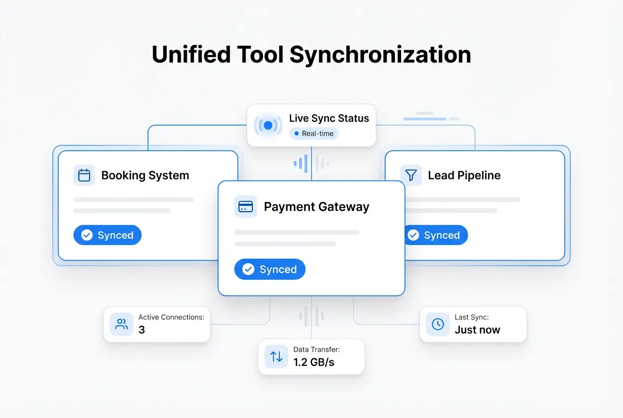 SimplifAI ensures that all your tools, forms, chat, bookings, payments, and pipelines work in harmony. Every system is synced to provide a seamless experience for both your team and your customers, improving efficiency, reducing errors, and supporting conversions.