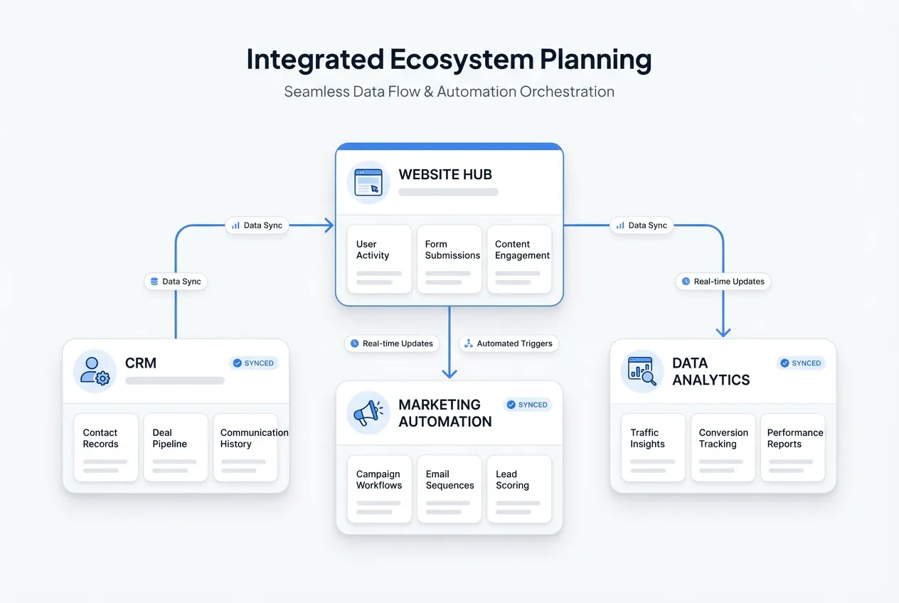 Every project starts with a system-first approach. We ensure your website integrates effortlessly with CRMs, automation tools, analytics platforms, and marketing systems. This holistic planning guarantees smooth operations, efficient data flow, and a connected ecosystem that supports your business goals.